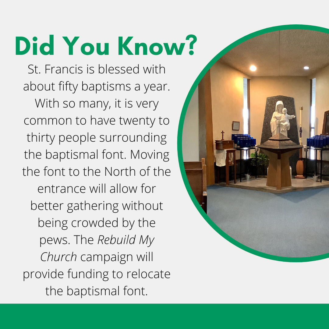 After years of hard work, careful planning and plenty of prayer, we are pleased to announce that St. Francis of Assisi is moving forward with an extraordinary stewardship effort to fund the many repairs, renovations, and updates tested in the recent planning study conducted by the Steier Group. The decision to proceed with a campaign was a collective choice made by our council leaders and Fr. Jarrod. Ultimately though, the decision was made by our church family. During our recent planning study, the vast majority of respondents were in favor of a campaign and indicated they would financially support the effort.
